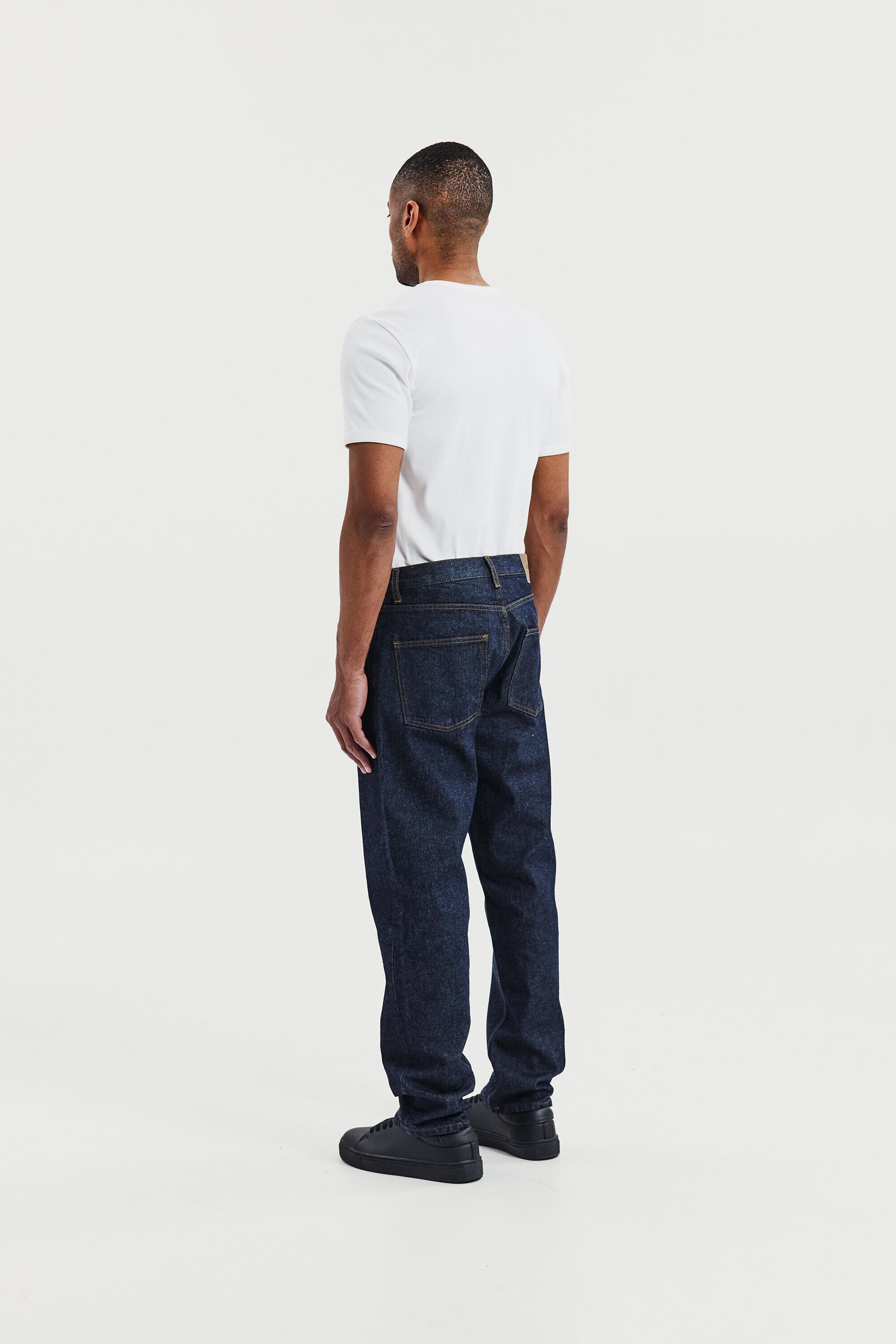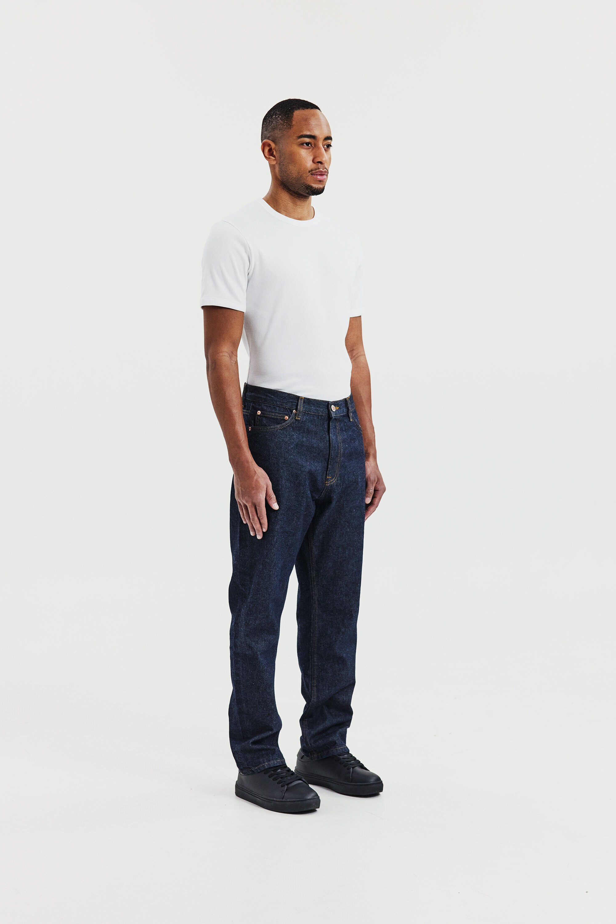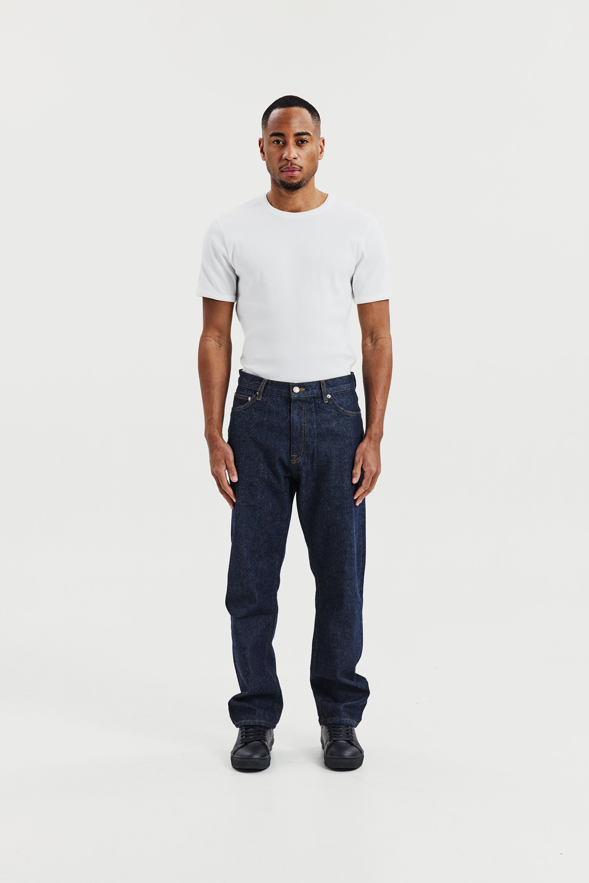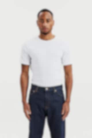 Ribbestrikket T-skjorte med rund hals til herre. En moderne basis-T-skjorte designet for hverdagsbruk. Den ribbestrikkede bomullsstrukturen gir en fleksibel og komfortabel passform som holder formen over tid.