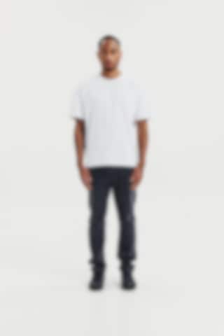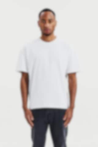 T-skjorte laget av robust 300 gsm økologisk bomullsstoff. Den har en solid halsutringning og stilige sidesplitt. Med litt lengre ermer og bredere skuldre gir plagget et avslappet uttrykk. Denne T-skjorten passer best som den er, men fungerer også godt under en jakke eller blazer.
