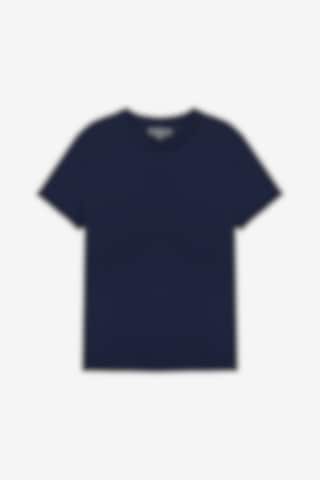 år klassiske T-skjorte med rund hals og vanlig passform, nå med oppbrettede ermer. Modellen har oppbrettede ermer som er festet med en diskret søm for å sikre at de ikke ruller ned."