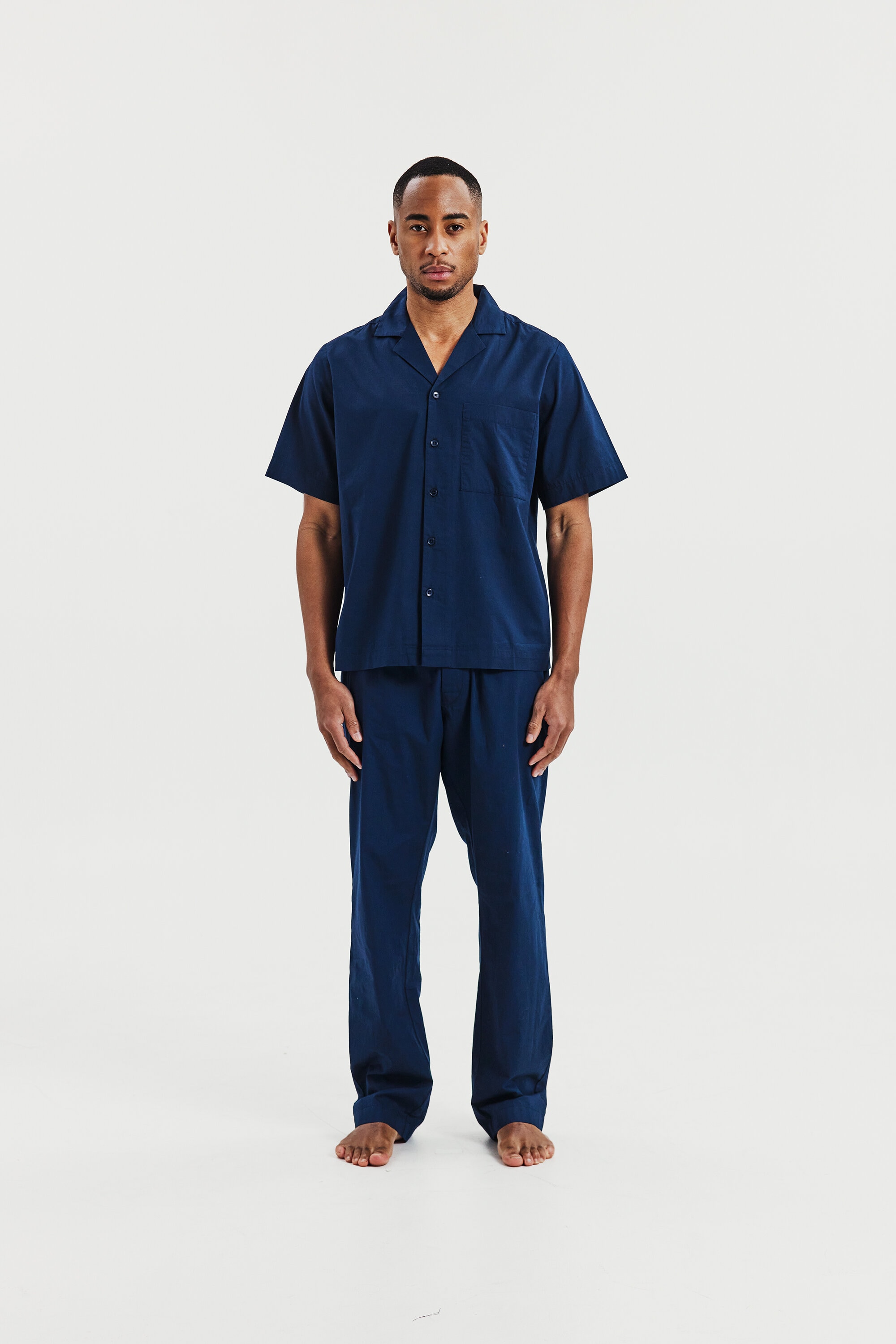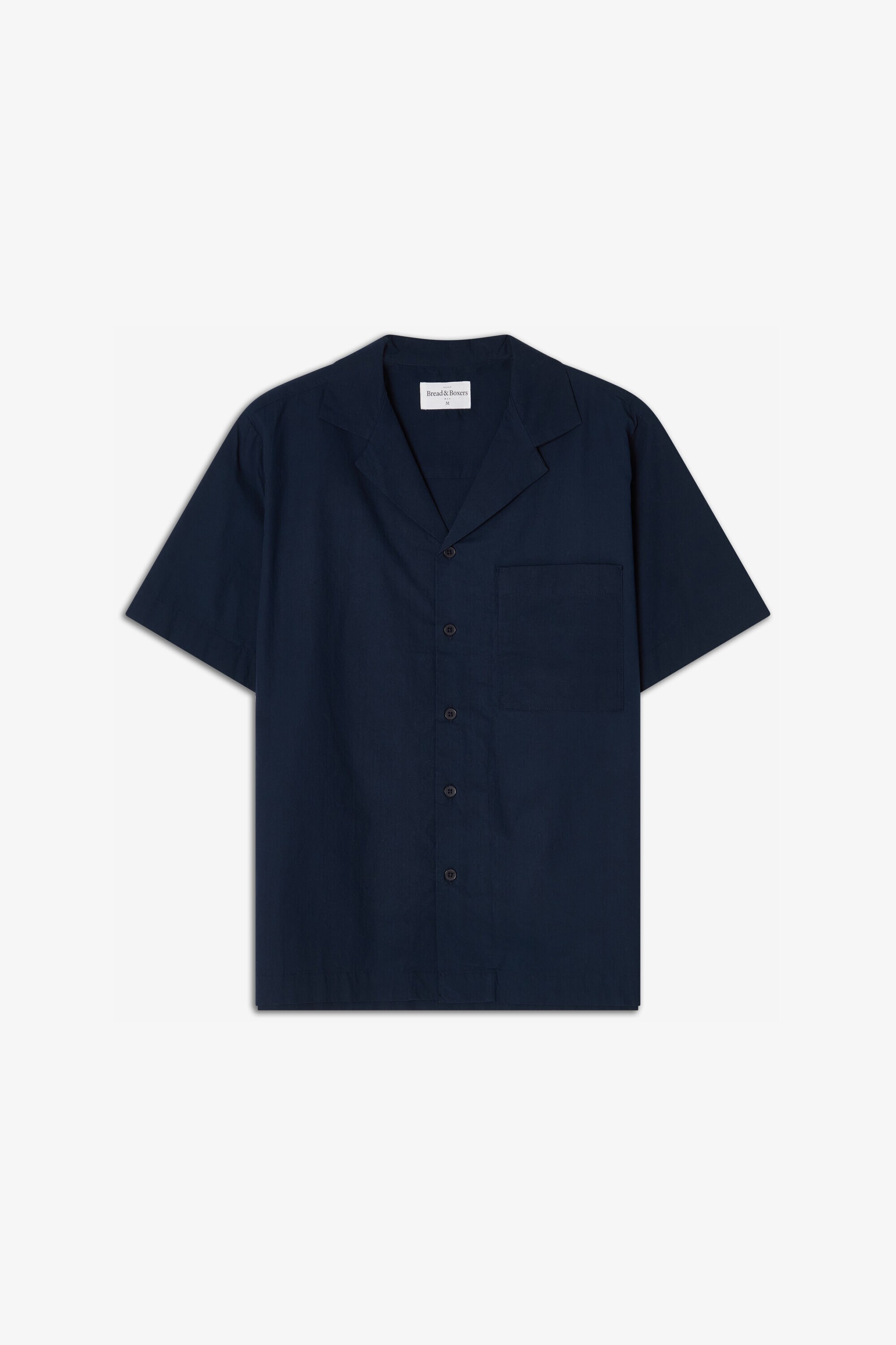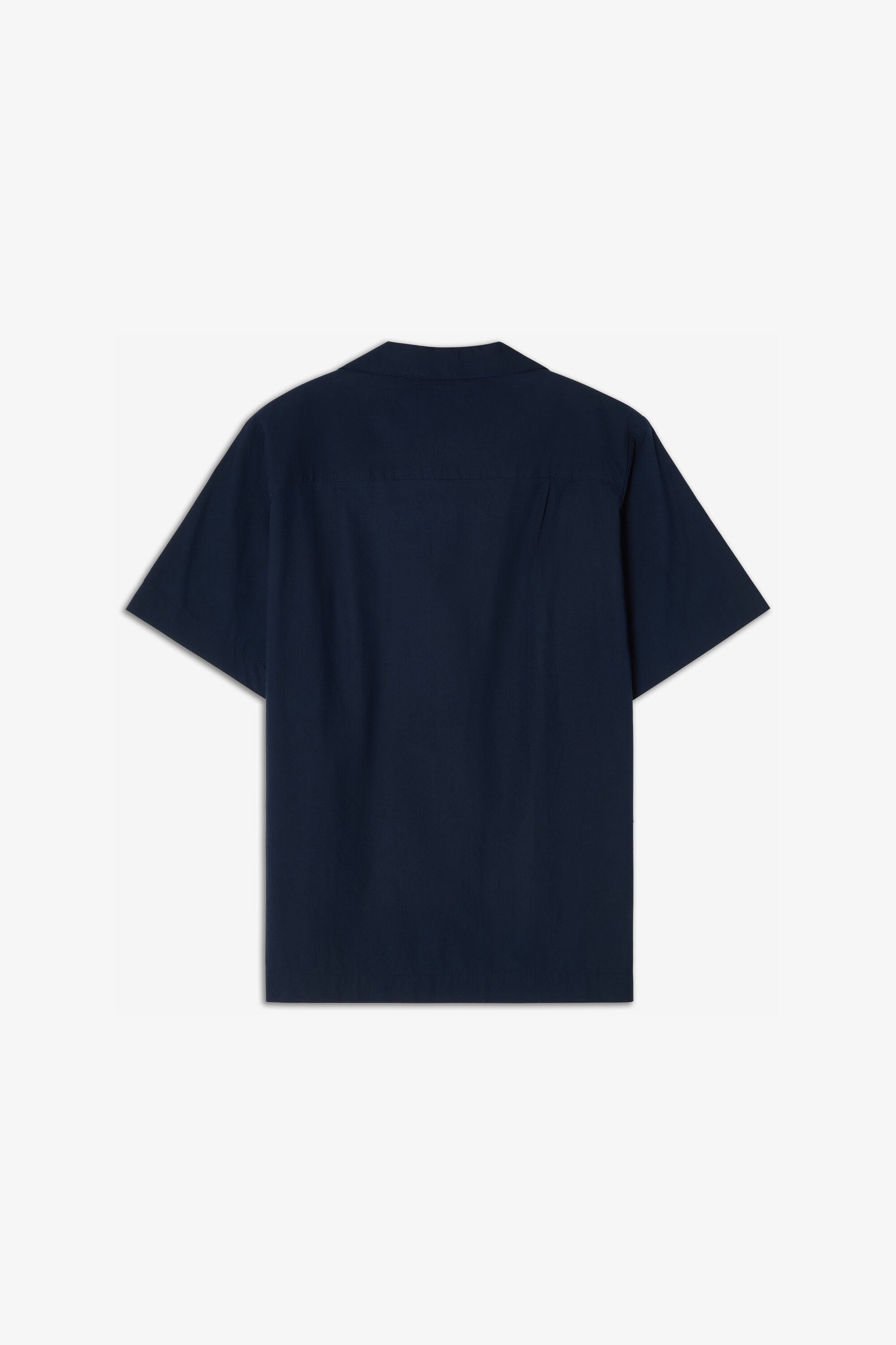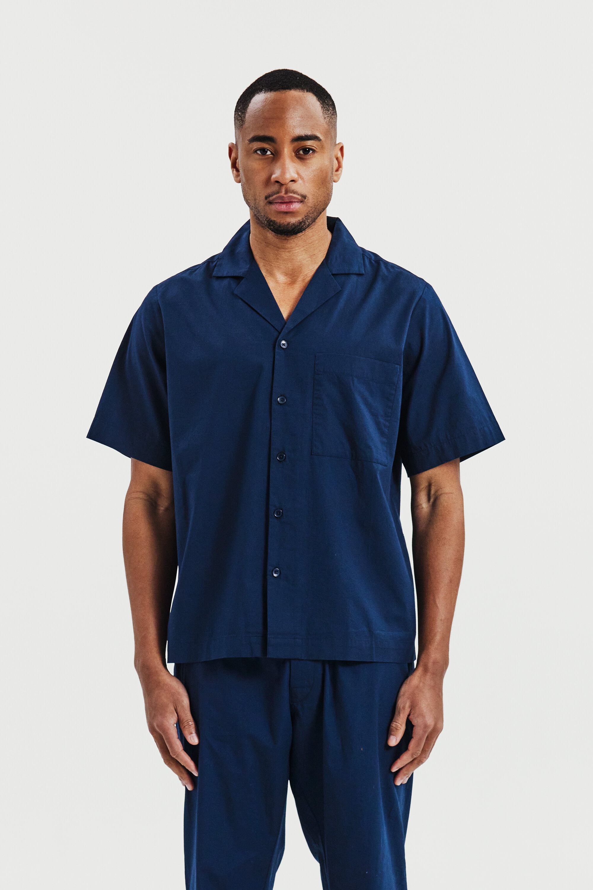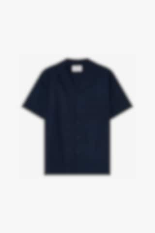 Laget i crisp bomull som føles myk og pustende mot huden. Den åpne kragen og korte ermene gir et uanstrengt uttrykk. Fargen dark navy gir skjorten et mer sofistikert uttrykk.
