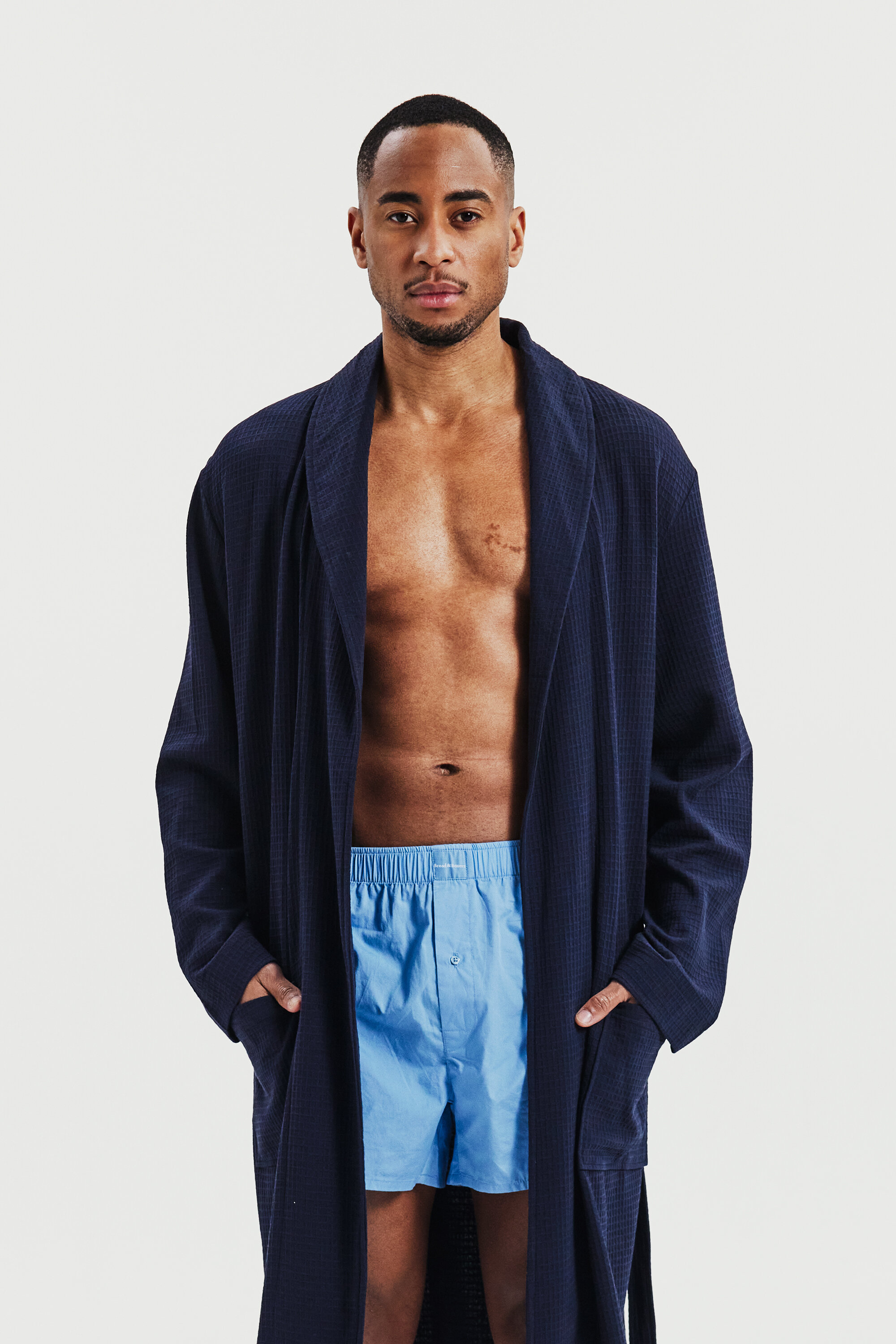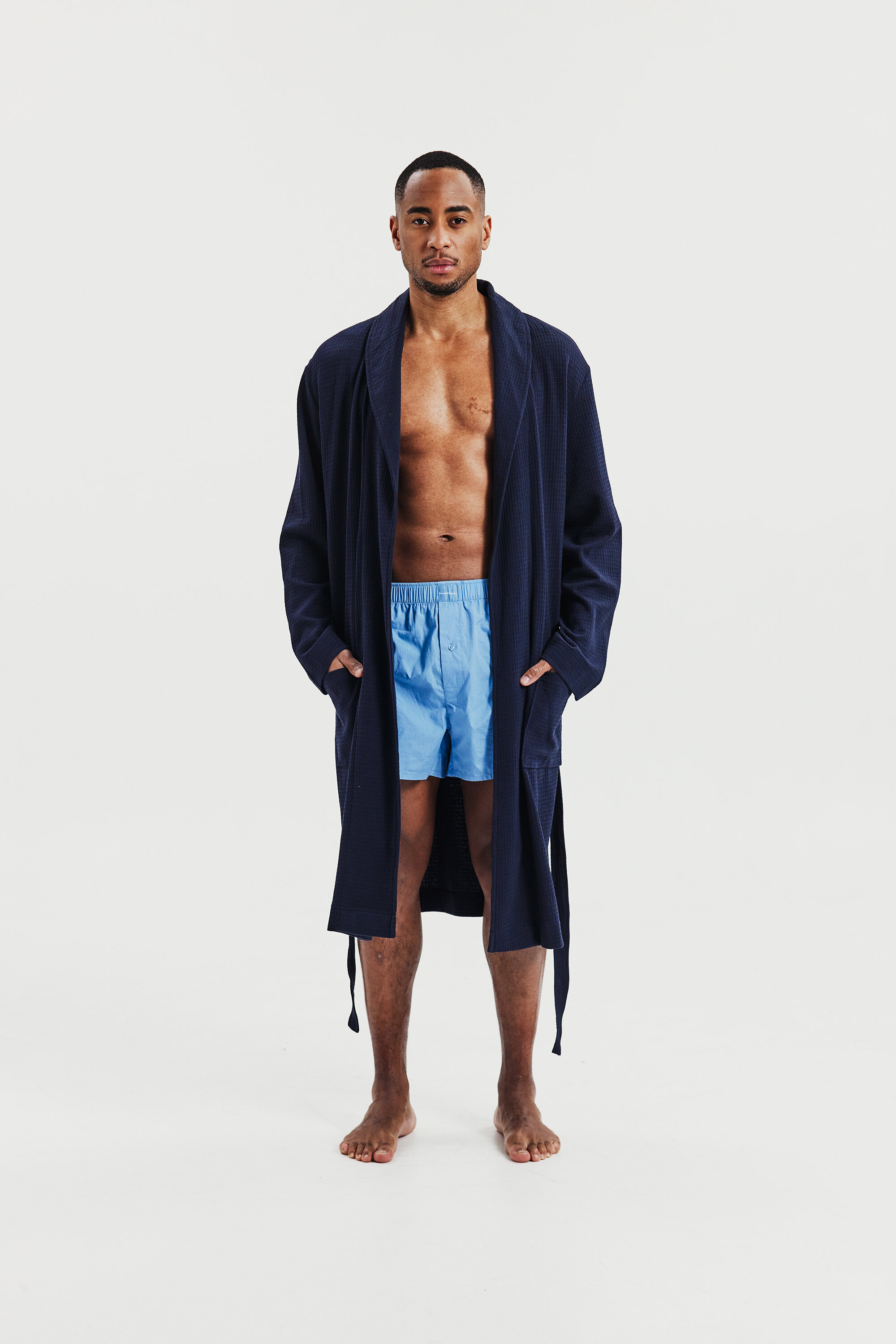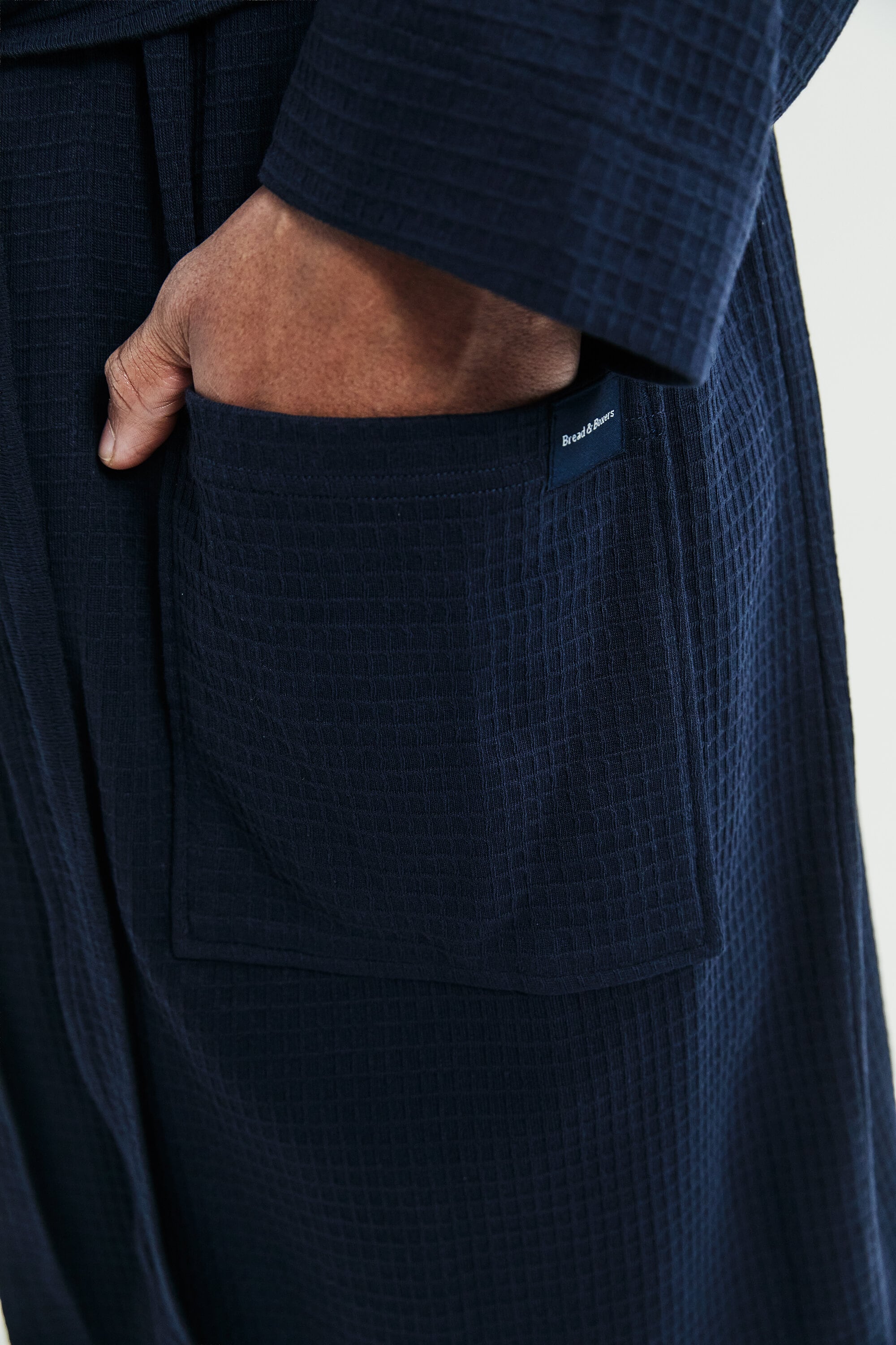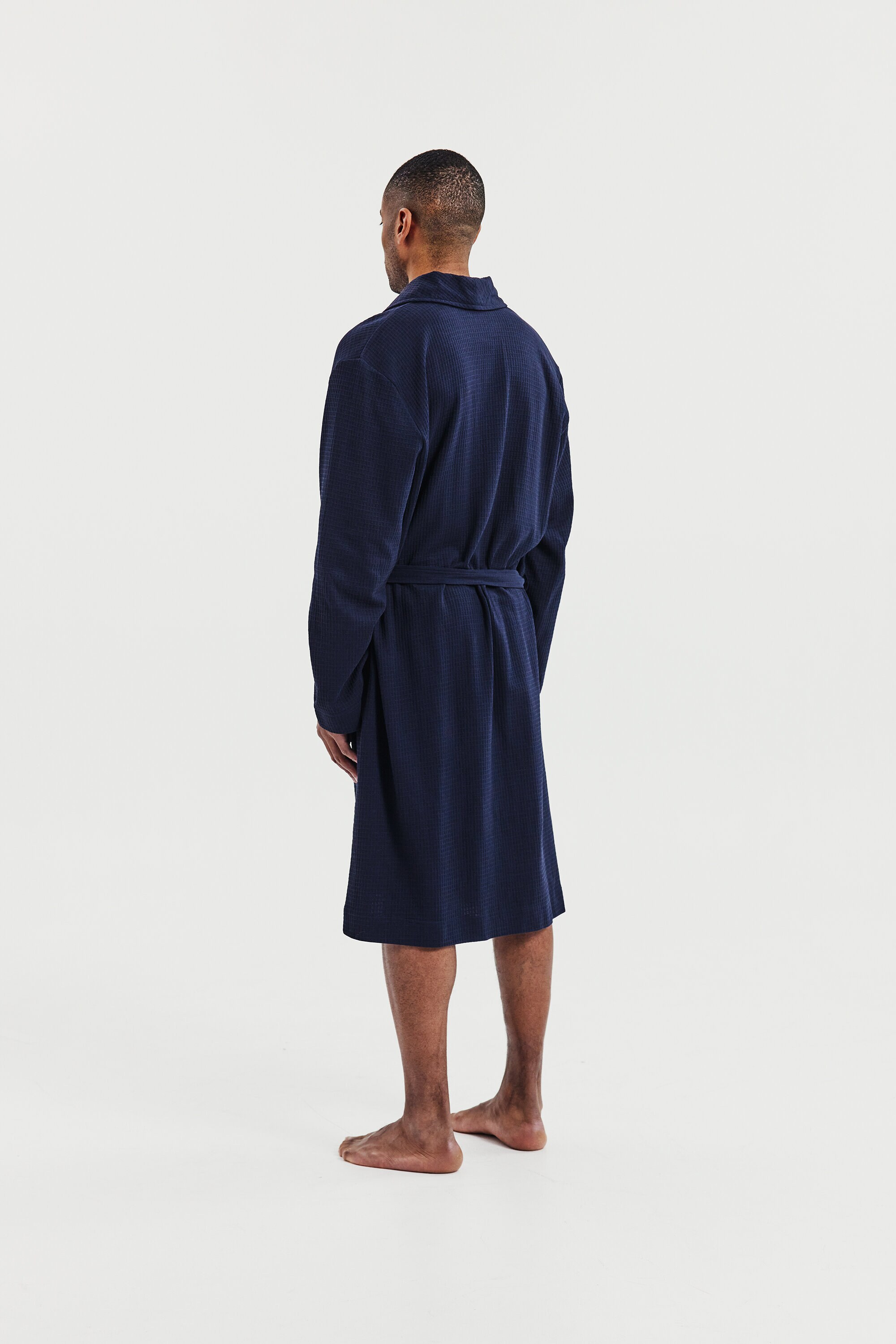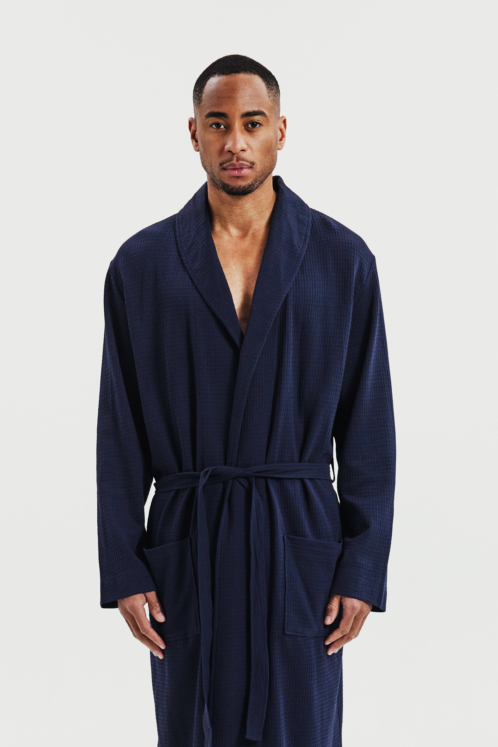 Skapt for både komfort og stil, denne velsittende morgenkåpen i vaffelstrikket bomull har belte og doble frontlommer. Den allsidige designen gjør den perfekt for avslapning hjemme eller en dag på stranden.