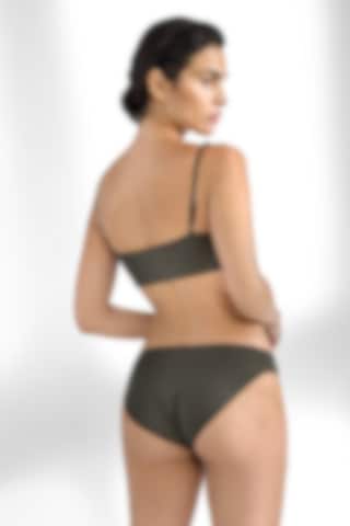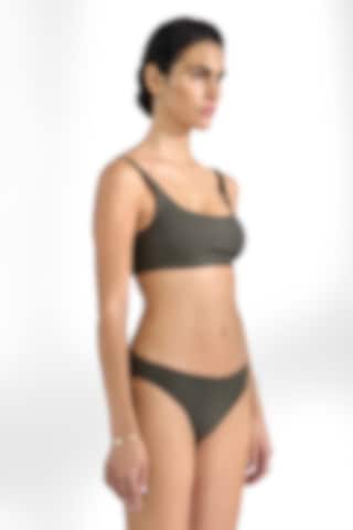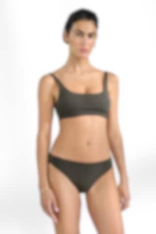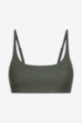 Bikini basert på vår populære "Soft Bra". Modellen har en fleksibel passform, justerbare skulderstropper og en tynn vattering som kan tas av. Det ribbestrikkede stoffet er laget av gjenvunnet polyamid og har en fantastisk glans.