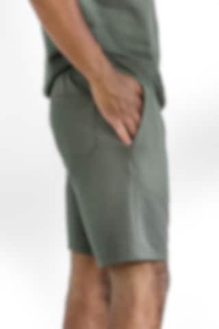 Meget allsidig Lounge Shorts i myk økologisk bomull. Minimalistisk og smal silhuett, stopper rett over kneet. Ribbestrikket linning med snor og maljer, rå kanter nederst. Skråstilte lommer foran og påsydd lomme bak. Flott shorts både til avslappende hjemmebruk og som en stilig sommershorts.