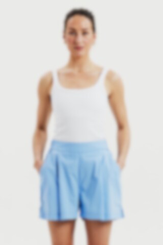 Den elastiske midjen bak gir en fleksibel passform som er behagelig hele dagen. Laget i 100 % økologisk bomullspoplin – et lett og pustende materiale med glatt overflate. Fargen Air Blue gir et friskt sommerlig uttrykk.