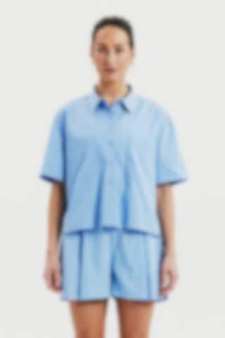 Poplinshorts i økologisk bomull med avslappet passform. Shortsen har en lett utsvingt silhuett som gir et moderne og luftig uttrykk. Frontleggene skaper struktur, mens sidelommene gir både funksjon og komfort.