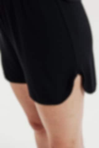 Shortsen har snøring i livet, avrundede sidesplitter og dekorative flatlock-sømmer ved kanten – en kombinasjon av komfort og stil.