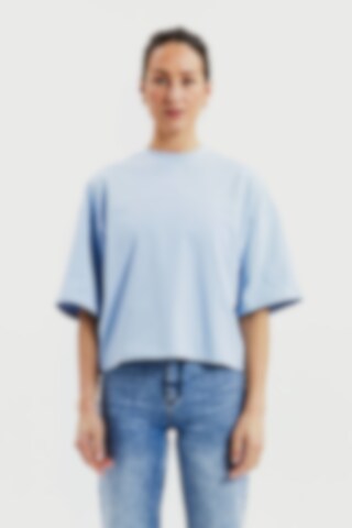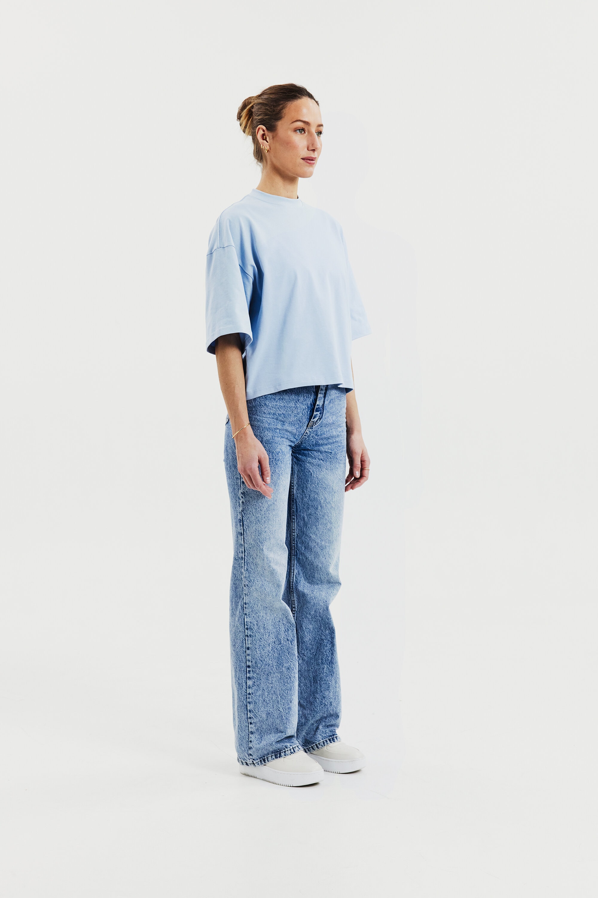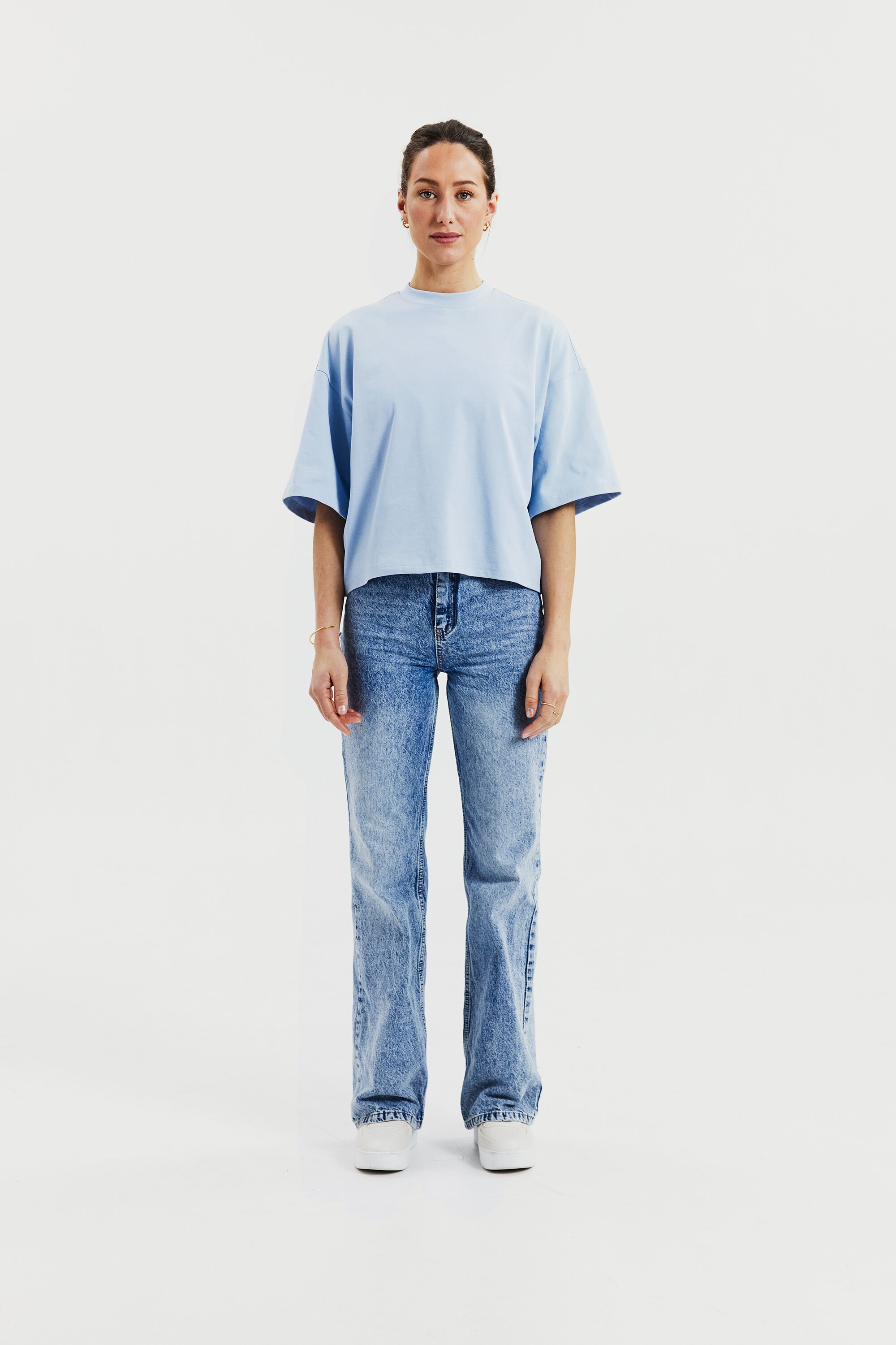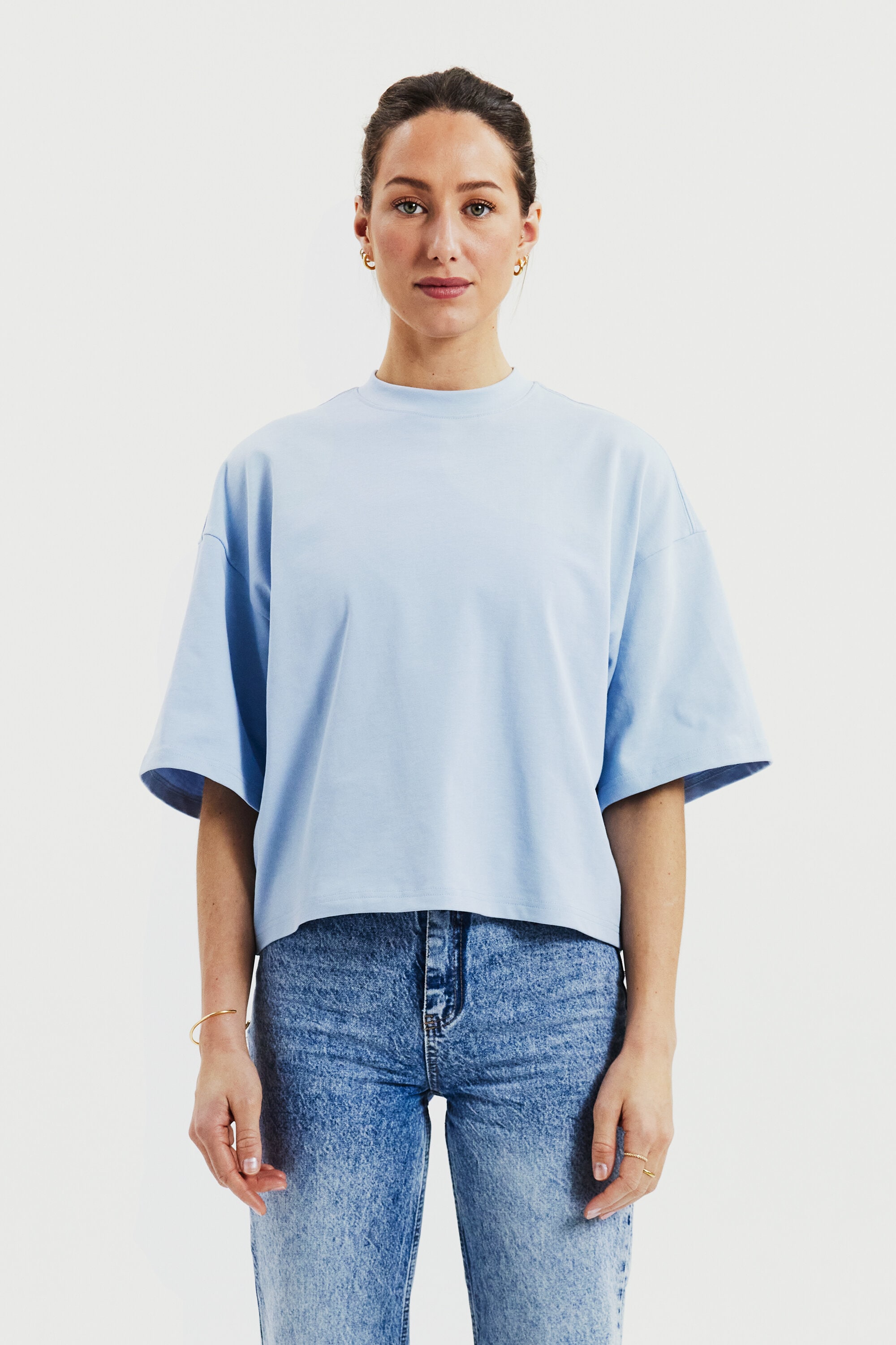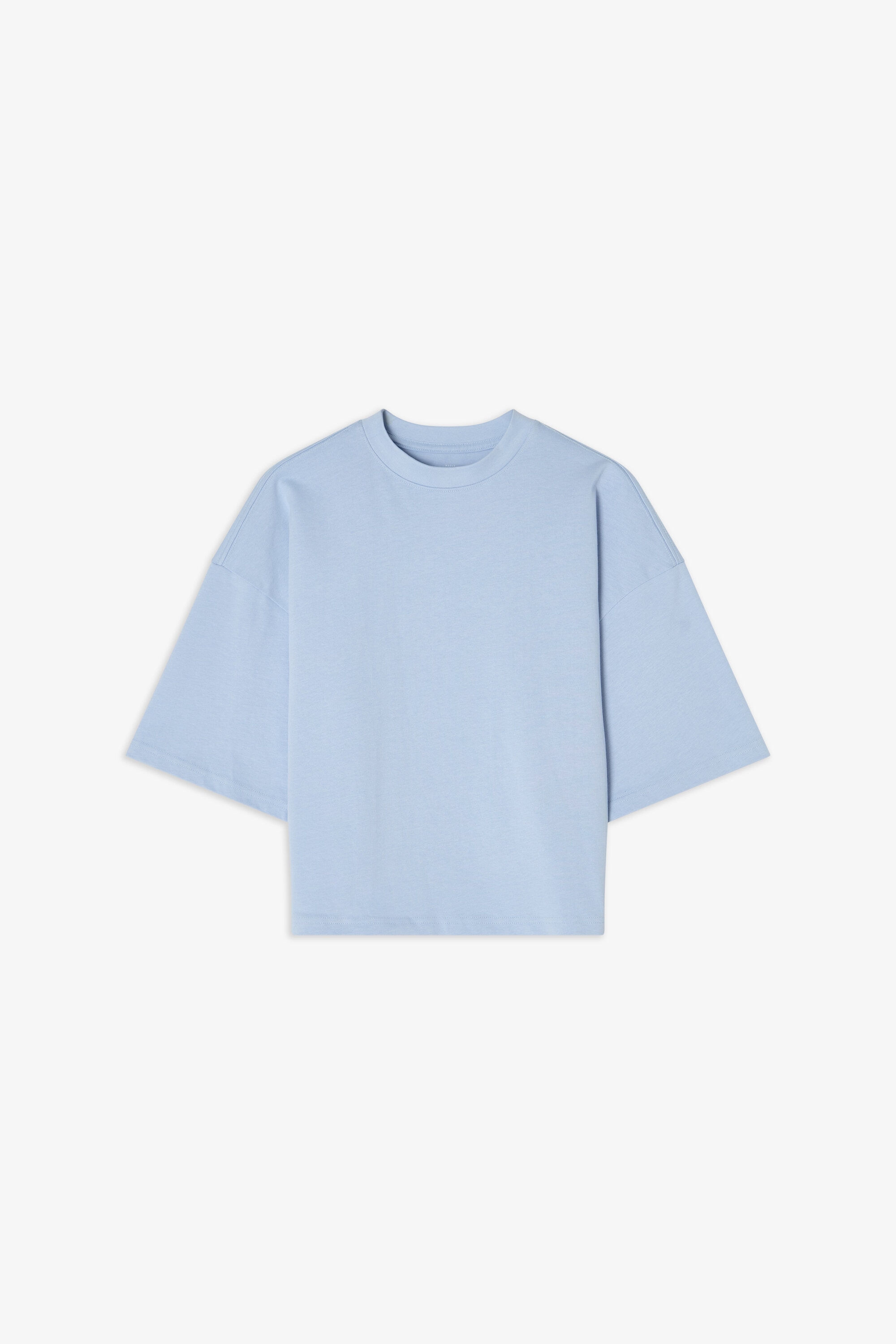 T-skjorte laget av robust 300 gsm økologisk bomullsstoff. Den har en solid halsutringning og stilige sidesplitt. Med litt lengre ermer og bredere skuldre gir plagget et avslappet uttrykk. Denne T-skjorten passer best som den er, men fungerer også godt under en jakke eller blazer.