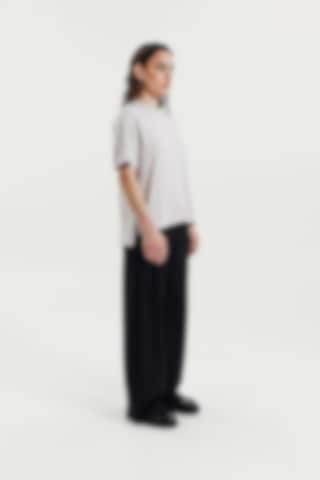 Opplev den luksuriøse følelsen av vår tunge viskose-jersey stoff med sitt utsøkte draperi. Den boksaktige passformen og splittene på sidene gir enestående komfort. Kombinasjonen av dette førsteklasses stoffet og den moderne snittet gir T-skjorten vår et oppdatert og elegant utseende som virkelig er bemerkelsesverdig.