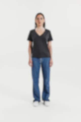 En moderne klassiker med en boxy passform, laget av tett og myk økologisk bomullsjersey. Designet for en regular fit med en romslig V-hals og avsluttet med presise toppsømmer – et tidløst basisplagg for enhver garderobe.