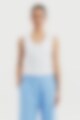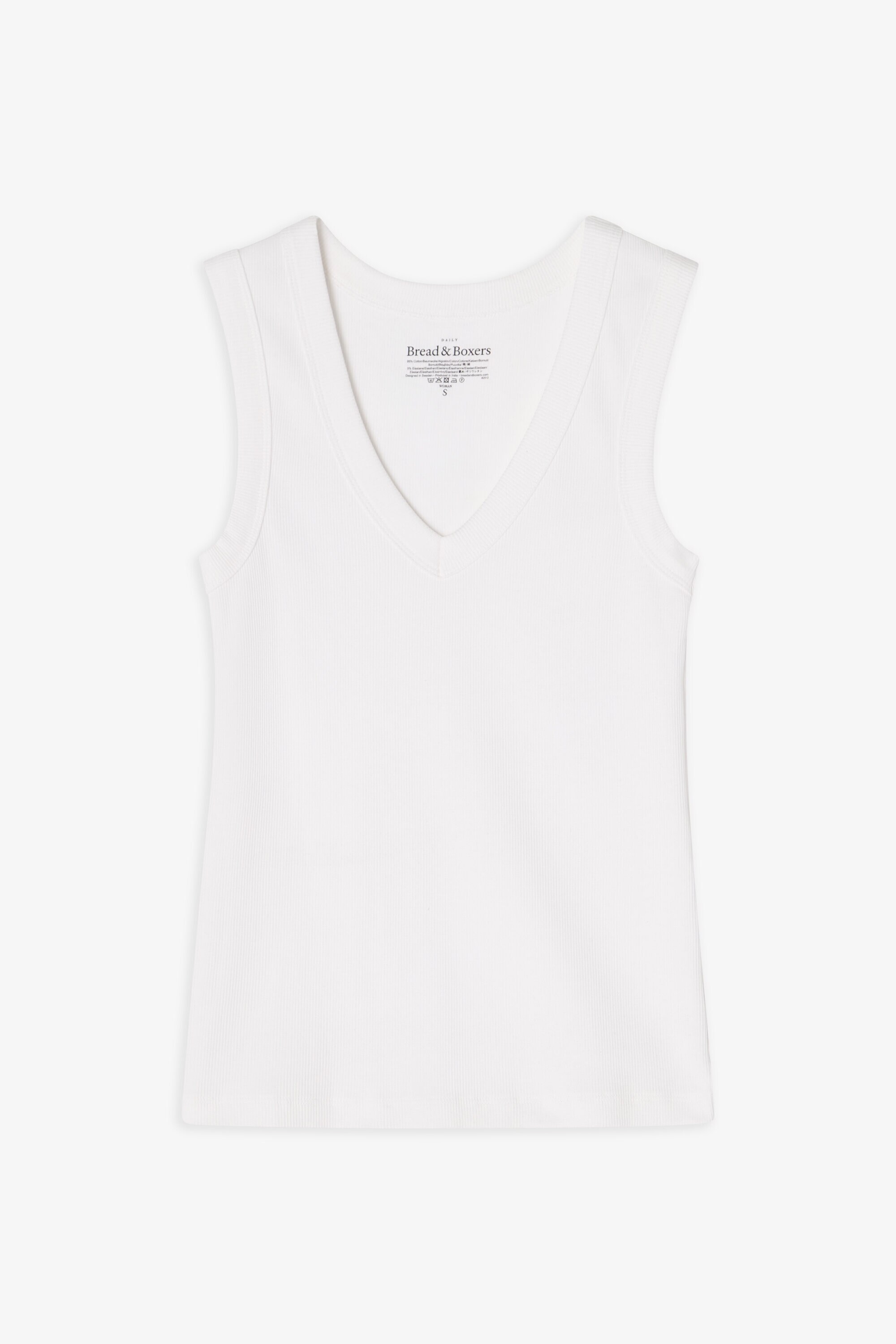Ribbestrikket singlet / tank top til dame med dyp V-hals. Laget i en myk ribbekvalitet av 95 % bomull og 5 % elastan som gir en komfortabel og fleksibel passform. Den dype V-utringningen og de brede kantene gir et rent og strukturert uttrykk, mens den smale silhuetten gjør toppen perfekt til lag-på-lag eller alene på varme dager. En enkel og tidløs singlet som raskt blir en favoritt i basegarderoben.