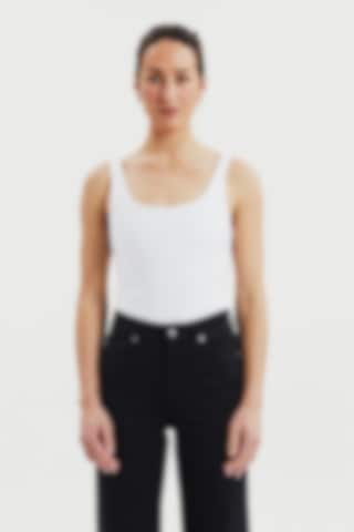Elegant singlet laget av ekstra tykt økologisk bomullstrikot. Det myke stoffet gir stabilitet, og høy tetthet reduserer risikoen for see-through. Den dype utringningen bak gjør den til en stilig og veldig anvendelig topp. Perfekt sammen med et skjørt for en mer pyntet stil.